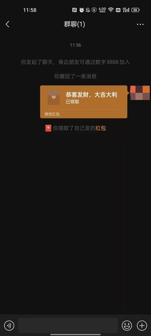 上个演示中可以看到,笔者建立了只包含自己的一个微信群,相比文件传输助手这个单人群可以使用群聊中的所有功能。创建方式也很简单,右上角“+”号——发起群聊——面对面建群,输入号码就能建立只属于你自己的群了,甚至可以给自己发红包玩儿。
