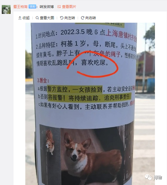 在户外,闻其他狗狗的粪便和尿液,是狗狗的社交,如果不让它门社交,就好比爸妈不让你看我们博物每天11点的推送、或者看完不让你在评论区留言一样残忍。但为了避免狗子闻着闻着就吧唧吃一大口,需要牵狗绳,这既是悬崖勒马,也遵守了养犬规定。
