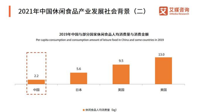 众所周知,国内外的休闲零食市场有着较大的差距。数据显示,2019 年中国人均休闲食品消费量为2.2 千克,同期日本、英国、美国人均休闲食品消费量为5.6、9.5和13.0千克。进口零食似乎对中国市场有着天然的吸引力,让Z世代的年轻人趋之若鹜。