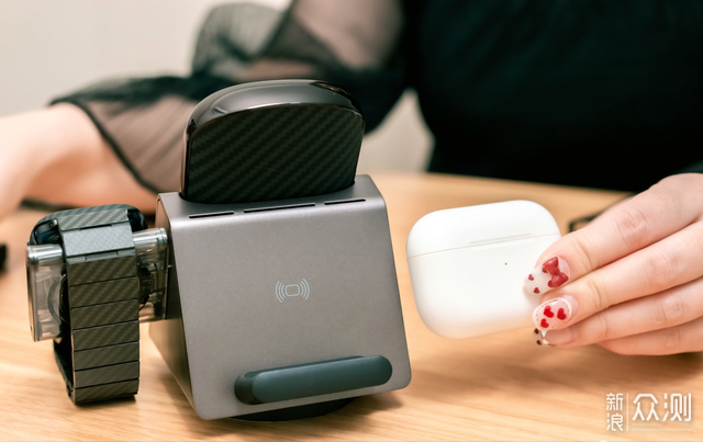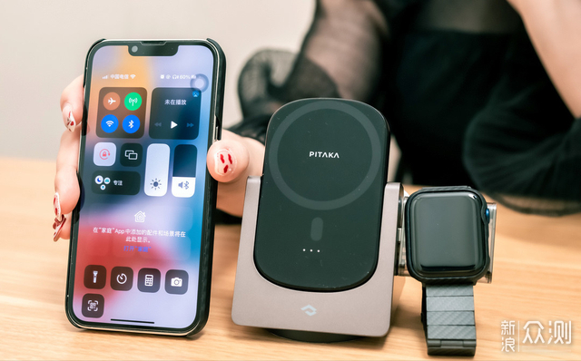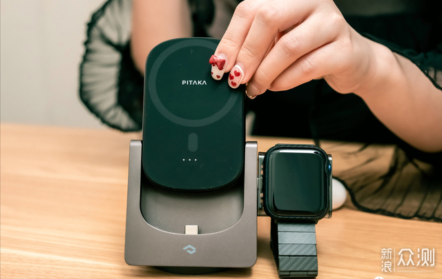 这款pitaka MagEZ Slider三合一多功能充电器可以同时为 iPhone、AirPods、Apple Watch 三款设备进行无线充电,相当强大和实用,且体积小巧,不占空间。