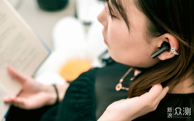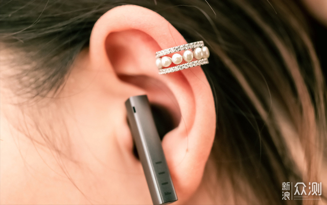 它重量很轻,戴起来不会有下坠感。半入耳式设计让耳机腔体部分挂在耳道外侧,可以有效减少对耳道的压迫,所以长时间佩戴也不会觉得难受。