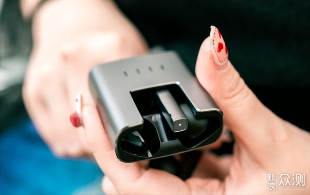 整个耳机是长方体,可以说颠覆真无线蓝牙耳机固有形态,线条感和金属光泽透漏出德系产品的严谨。充电盒搭载了经典的 FIIL 呼吸灯,科技感满满~
