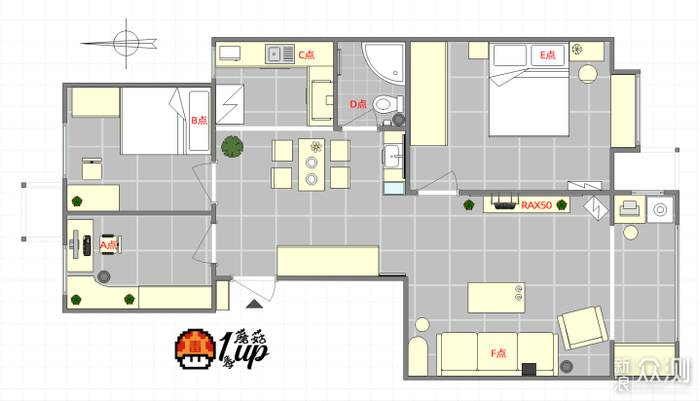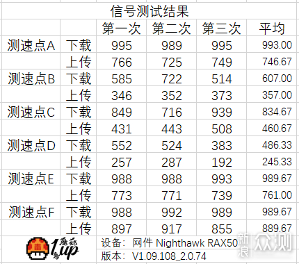 在每个测试点都测试三遍以保证数据准确性。测试结果让我有种难以置信的感觉,在A点(间隔10米)测速、在E点(隔一堵墙)测速,结果仍然跑满千兆网络,信号强度几乎爆表。这个测试结果比起自家大哥RAX70强太多了,RAX50 YYDS!