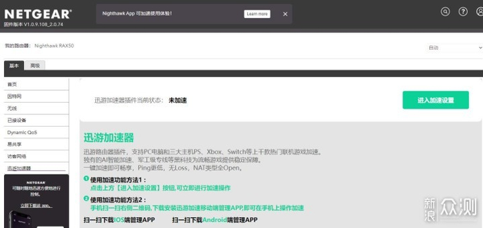 首先我就吐槽了啊,网件你着急推广自家APP的心态我理解,但是问题你不能把网页设置搞成这个样子啊……一开始以为是浏览器的锅,后来发现用微软自带的浏览器,设置入口也藏在这个位置,所以这里严重差评。