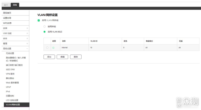网件的路由器设置还是很丰富的(点击菜单页切换到高级模式),除了常见的路由器模式、端口转发、UPnP和IPv6以外,还支持VLAN。以前我为了搞出VLAN还要特意把路由器刷成OP固件,刷第三方固件就放弃了手机远程控制,相当不爽。网件RAX50原生固件就支持,很不错。