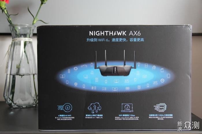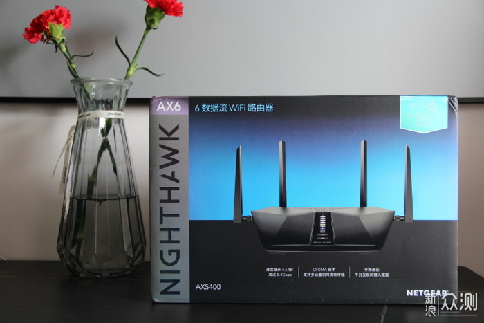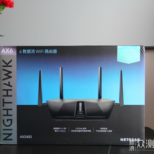 今天和大家分享这款网件RAX50,隶属于Nighthawk夜鹰系列,是一款AX5400级别产品,支持支持MU-MIMO、OFDMA、160MHz频宽特性,左上角的AX6字样表明了其WiFi6产品的身份。