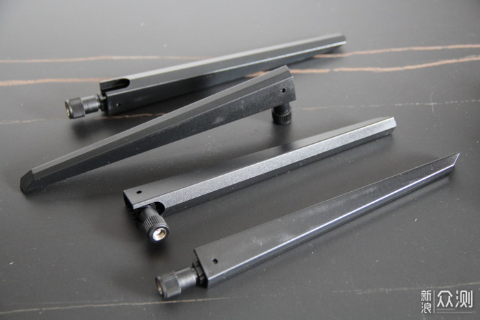 四根双频天线,不需要特意选择位置,对应路由器上四个天线底座,任意拧上即可。