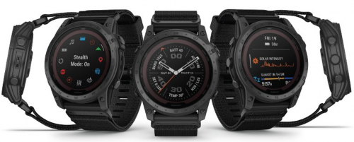 Tactix 7为户外进行战术行动提供了专用功能,包括兼容夜视镜的夜视模式,跳伞模式,GPS双坐标格式,投影航点,以及可以在几秒钟内删除所有用户数据。在飞行中,删除可以使用跳伞大师进行三种跳跃模式:高跳高开, 高跳低开和定点跳伞。将手表设置为双坐标模式,屏幕同时显示 UTM 坐标和 MGRS 坐标。当夜视模式启动时,屏幕的背光设置将降低到支持夜视镜读取的等级。
