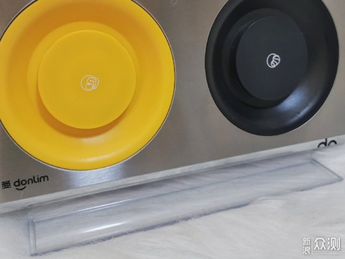 充电底座上则有明显的颜色区分,黄色为果蔬仓,黑色为肉类仓,分辨度高,让人一目了然,不会混淆。