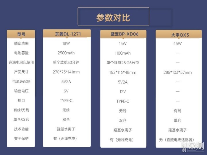 ▼从参数表上可以看到,东菱DL-1271、蓝宝BP-XD06和大宇QX3,这三款果蔬净化器均是采用羟基水离子净化技术,以水为原料,无化学物质添加,比较安全。其中东菱DL-1271、蓝宝BP-XD06是无线双仓设计,而大宇QX3则为有线单仓设计,具体三者表现几何,跟着楼主往下看吧。