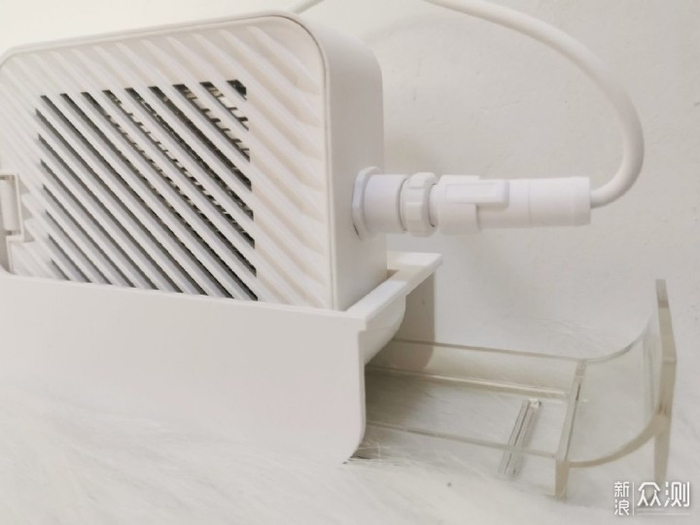 东菱DL-1271充电底座的底部配有透明托盘,可以收集净化仓滴落的积水。