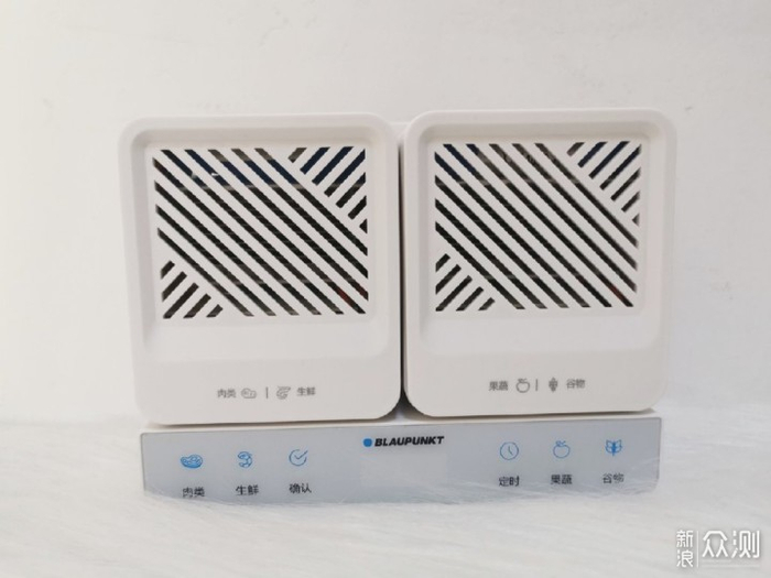 蓝宝BP-XD06与东菱DL-1271一样,同样为独立无线双仓设计,区分了肉类/生鲜仓和果蔬/谷物仓,这样就能保证荤素分开,更为卫生。充电底座和清洗仓中均有文字标识,可供我们辨认区分。