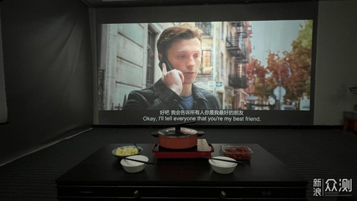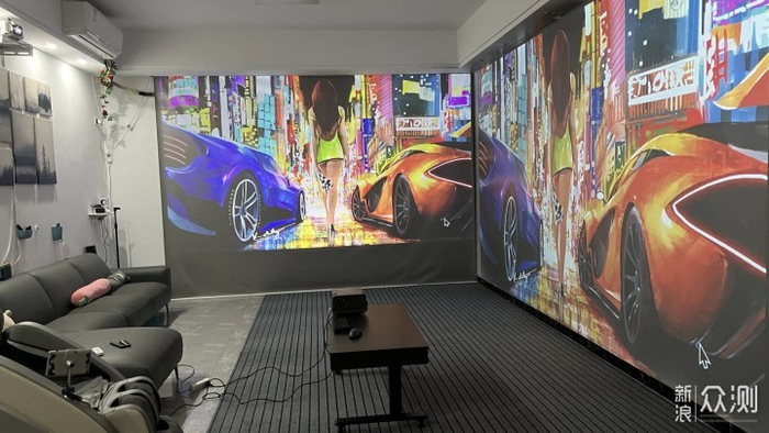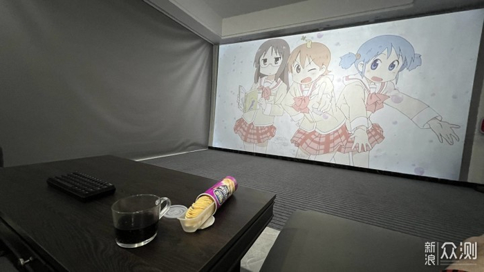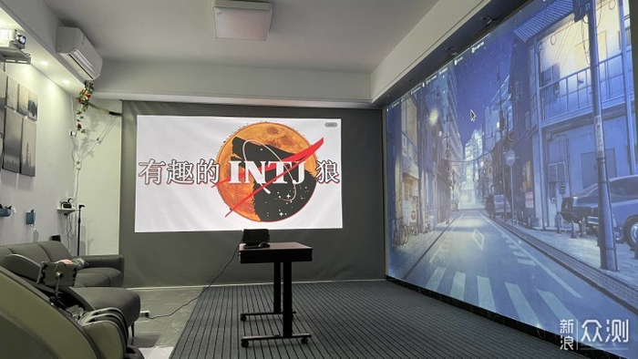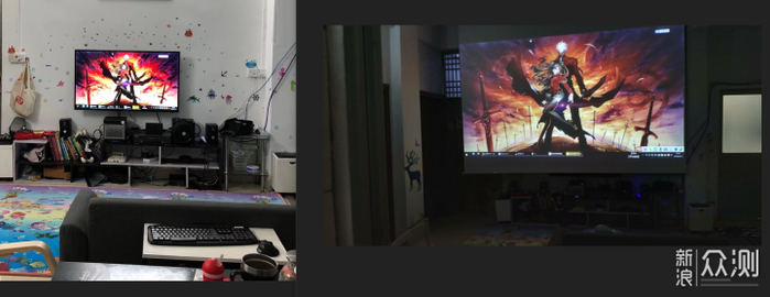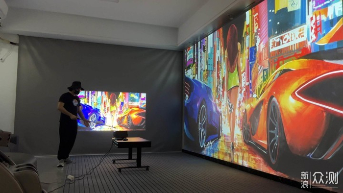 这是200寸与235寸的大小。所以顺便吐槽一下本狼每次要排到机器的原因就是这里,要知道距离,有参照物,知道画面大小才能是测评,放个单纯画面给你看毫无意义,放80寸的效果可以好的起飞,只要缩小来测可以赢很多机,纯粹作弊。而且拍摄角度也是另外一个是因为角度不对才颜色不好的。