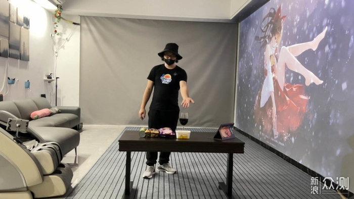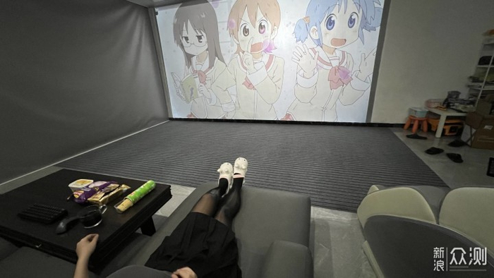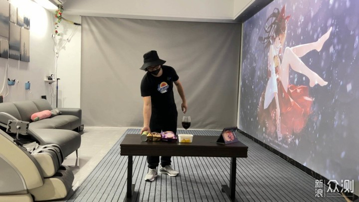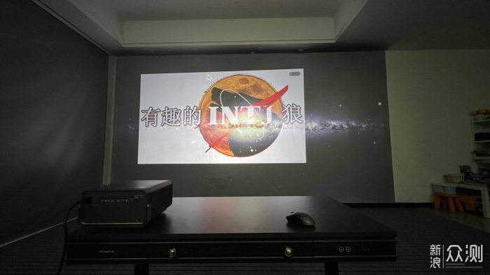 我当时是那个客厅太小了,兼顾吃饭,而且我那时候已经整了150寸投影了。那时候需要放键盘鼠标操控。