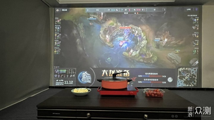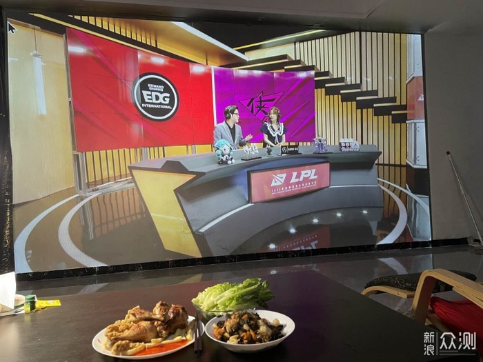 例如这样看比赛,观看电影的时候,茶几太矮吃东西非常难受,所以我改高了。就是因为升级完成这235寸的大画面后,这茶几也是想更换了。但找了好久大小和高度都没什么满意的。