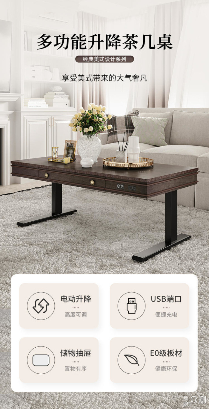 突然出现了一个电动茶几的图,当时我就点进去了!因为我真的挺需要这个的,之前其实也考虑过自己DIY的。没想到还真有成品了。并且完全戳中我的所有喜好。