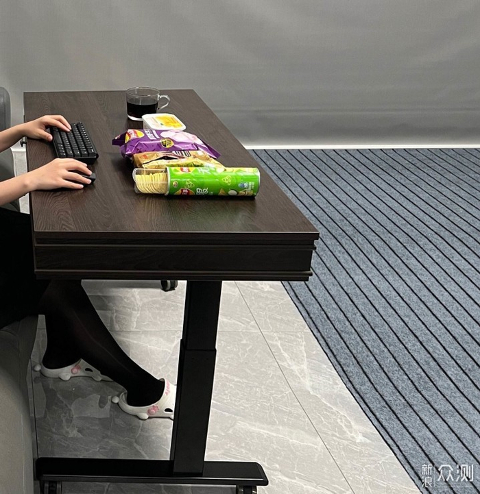 而且这个桌子可以升降,就是有时候挡住字幕了也可以降低下去。另外因为我拍摄对焦的是桌子所以背后画面糊了,实际不是这样哈~~