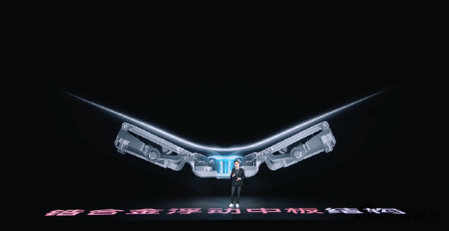 在折痕优化方面,vivo在新机铰链中央,设计了一条一体式锆合金龙骨,作为铰链的“骨架”,为铰链提供支撑。在龙骨之上,有一体式锆合金浮动中板,上下浮动,负责托起屏幕中央折痕,确保手机展开时不会出现中央凹陷的情况。