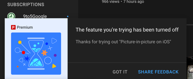 YouTube 在 2021 年 8 月启用了 iOS 上的画中画功能,作为该 App 的“实验性”功能。到 2022 年 4 月,YouTube 似乎已决定不值得保留该功能。