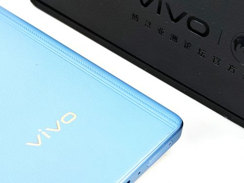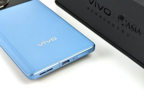 而在机身背部,这款全新的vivo X Note也极为出彩。该机提供有晴山蓝、大地灰、璨夜黑三款配色,而笔者此次拿到的正式此次主推的晴山蓝配色。该版本采用了手感极佳的素皮材质,并在机身两侧添加了3根竖向的压纹纹理,仿照高定皮包上的缝线设计,除了在视觉上让整机更立体,更为素皮材质的设计增添几分优雅、知性的质感。