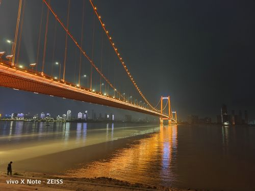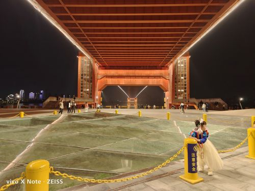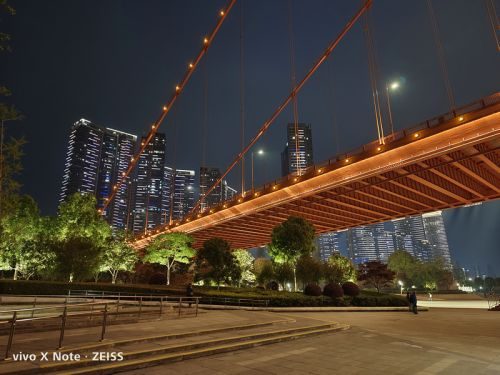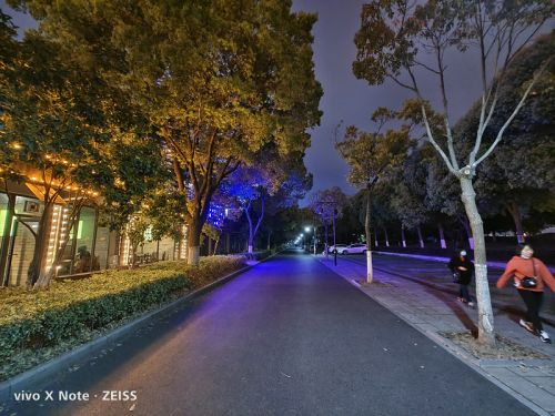 在夜晚的拍照场景中,vivo X Note在拍摄中可以保持对于复杂光线良好的控制力,还能进一步压低曝光时间和感光度来保证画面的纯净度,画面通透亮度较高,同时噪点控制得不错,明亮多彩的灯光也没有严重的过曝和失真,给人的第一观感不错。同时得益于这颗超大底主摄和自研V1芯片的加持,即使在极暗的场景下,该机也能拍出明亮、纯净的夜景照⽚。