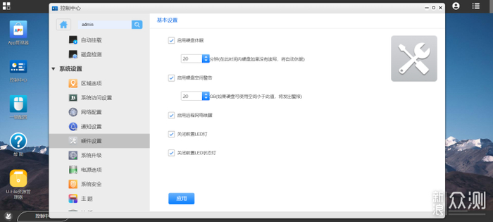 最后就是在硬件设置中,常用的硬盘休眠、硬盘空间警告这些功能都推荐开启,至于是否要打开远程网络唤醒就看个人需求了。
