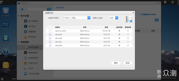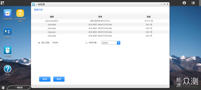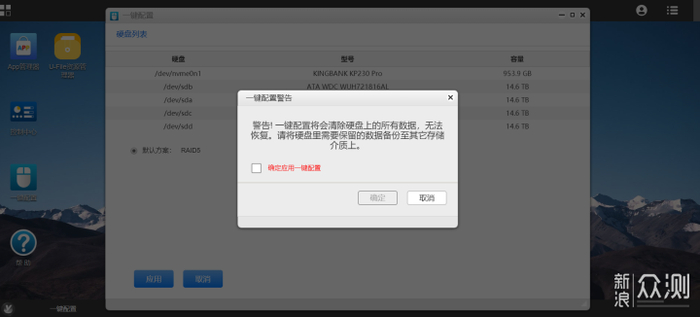 在一键配置中,万由OS6.0也贴心的帮我们做好RAID的配置,没有特殊需要就选择默认的RAID5就好。