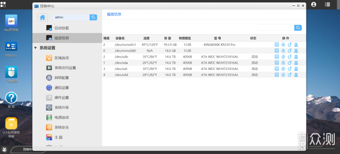 在格式化好硬盘后,就可以进入控制中心对硬盘和设备进行管理和监控。