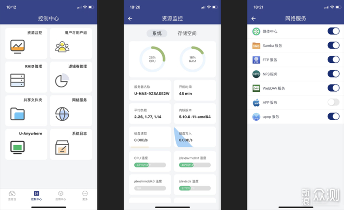 除了基本的状态监测外,万由APP还可以提供同网页端一样的高阶管理,像是打开或关闭不同的网络服务、RAID管理、逻辑卷管理等,常用操作都可以通过手机APP完成。