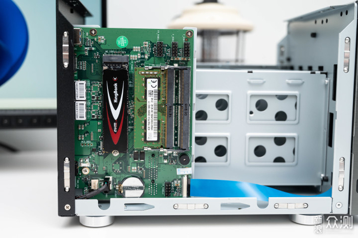万由HS-401P自带内存为8GB,而且默认没有安装NVMe缓存,如果我们想要扩展内存或者加装NVMe固态,就需要拆机。