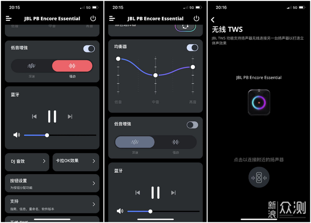 在前一段音质的表现中,我提到了均衡器,那是因为JBL拥有自带的手机APP可以下载,在APP中,我们可以对音质进行选择调节,还可以增强低音,但是这一点我觉得在日常室内听歌时没必要,除非是户外Party,还是比较强劲的。