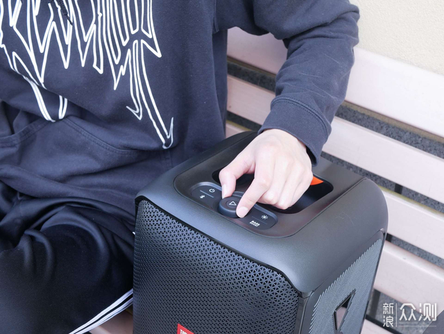 再来说说JBL这款产品,因为外观设计的变化,所以在内部发声单元的布局上也有所改变,JBL PartyBox Encore Essential配置了2*1.75“高音+1*5.25低音炮,在AC供电模式下可以输出100W的功率,音质继承JBL强大的调教能力,配合上JBL标志性的低音技术,带来的是极具震撼的音效。开机之后会有1S左右的声效,第一次使用时,我着实不自觉发出了“哇哦”的感受。