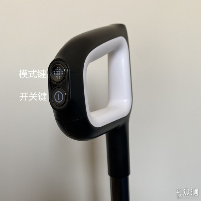 机器的按键集中在把手上,前部共有两颗实体键,下方是开关键,采用光面设计,上方则是模式键,采用凹型设计,带有弧度,接触灵敏。