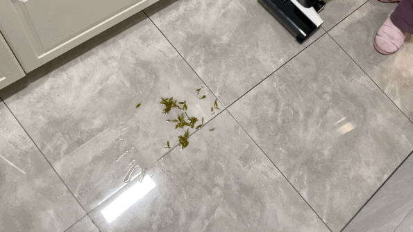 杯子打翻了,茶叶和水满地都是怎么办?别担心,添可芙万2.0 LCD轻轻松松都能把它们吸走。
