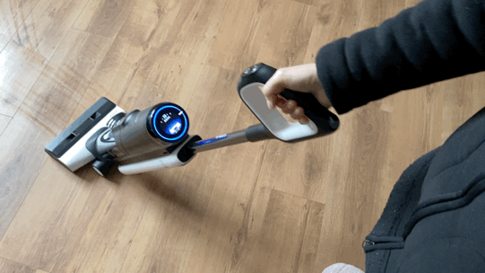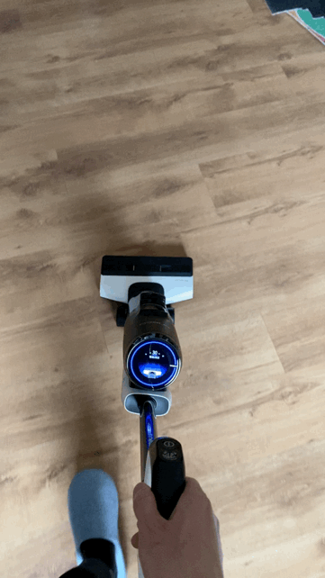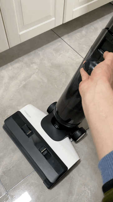 作为一台智能洗地机,添可芙万2.0 LCD有自驱动功能,开机后刷头内的独立的马达立即工作,在滚刷的带动下洗地机会自动向前,使用时只需控制方向即可,就像遛狗一样,老人、小孩一学就会,特别轻松省力。