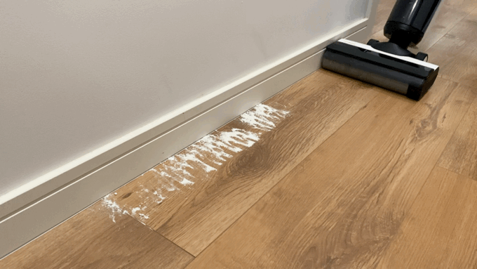因为添可芙万2.0 LCD有着领先目前市面上其他竞品的单侧无框滚刷设计,其贴边清洁能力超强,专治墙缝、角落等难各种清洁的区域,在机器强大的吸力下,即便是细小颗粒都不会遗漏,也不会四处飞溅。