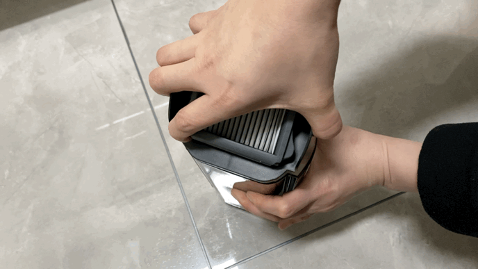 继续往下,来看吸头,向内按压卡扣即可取下挡水板。
