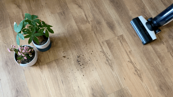 最近上海疫情严重,封闭在家没事干,给花盆换换土弄得地板上都是,有了洗地机的帮助就不用担心了。