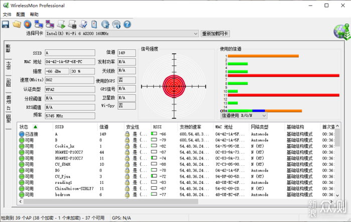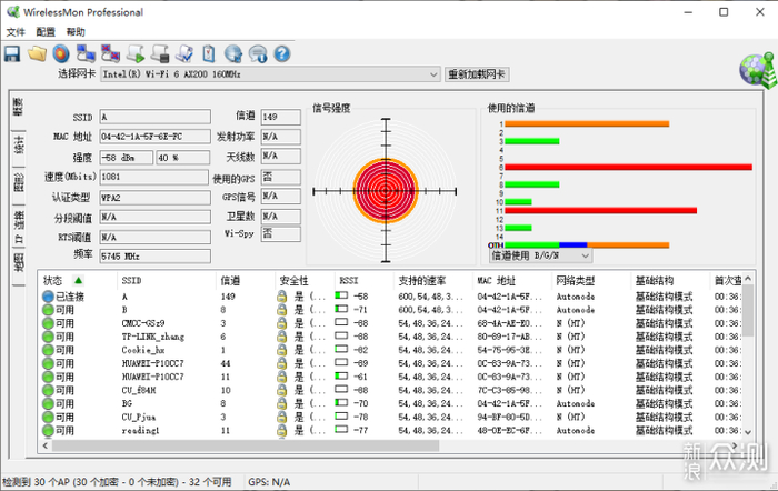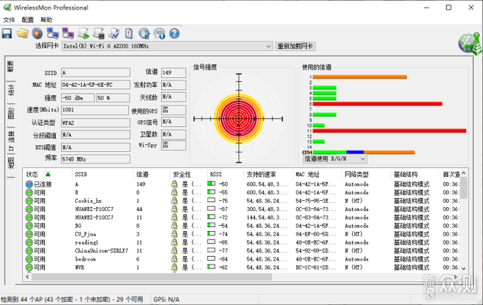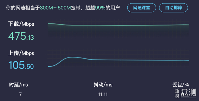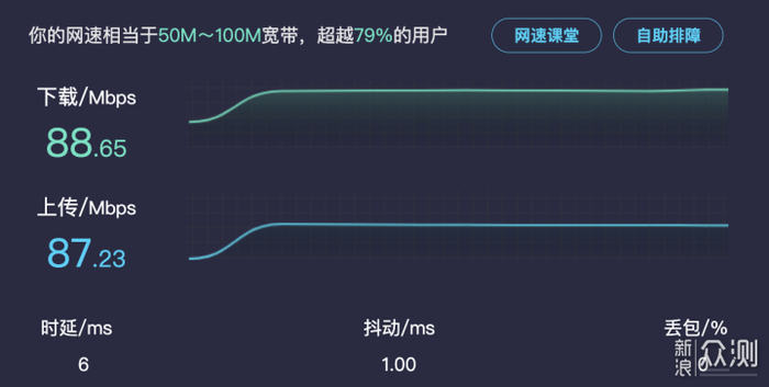 信号强度测试利用搭载AX201网卡的机械革命无界16轻薄本安装WirelessMon软件进行测试,4个位置的信号强度均不低于-70dBm,非常稳定。移动位置时,轻薄本不间断播放NAS中的影片,来验证AiMesh无缝漫游功能,从地下室走到最上层的书房全程无卡顿,完全感受不到网络切换。