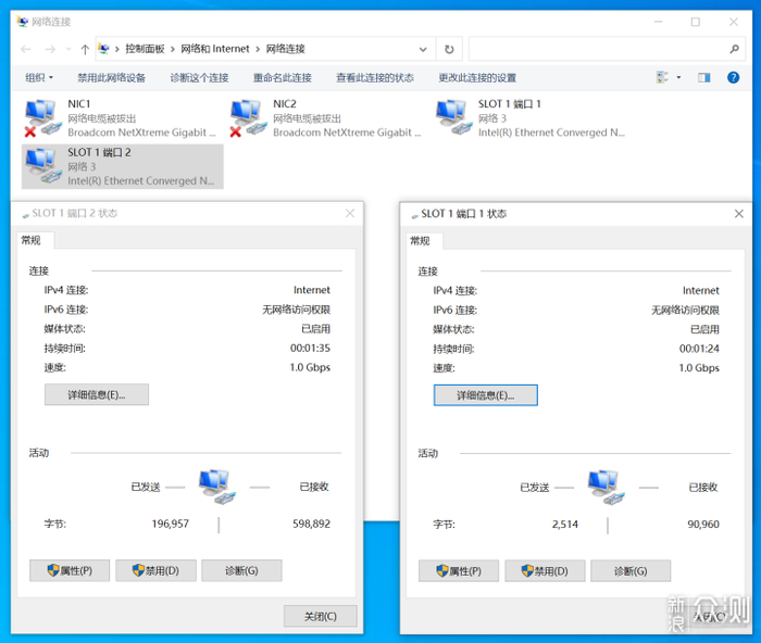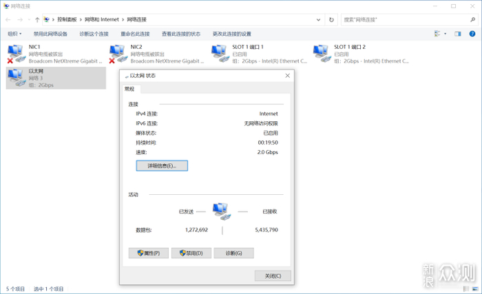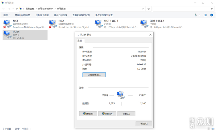 设置提示成功后,Windows网络连接会多出1个图标,连接速度依旧1Gbps。