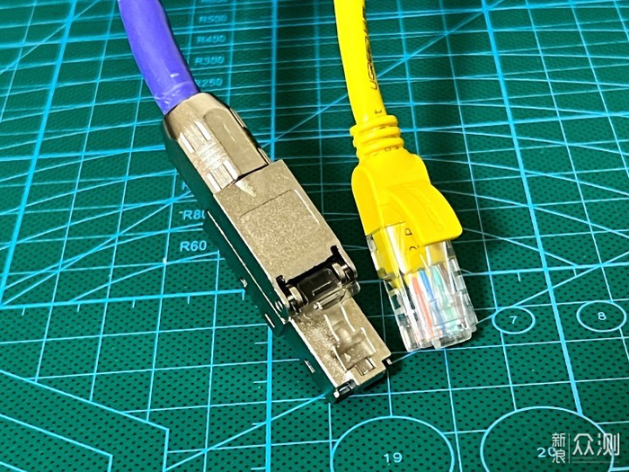 为此又下单7类双屏蔽网线和金属水晶头,免工具组装完毕后且不说实际效果如何,外观够威猛,给人满满的安全感——比超6类网线粗的不是一星半点。