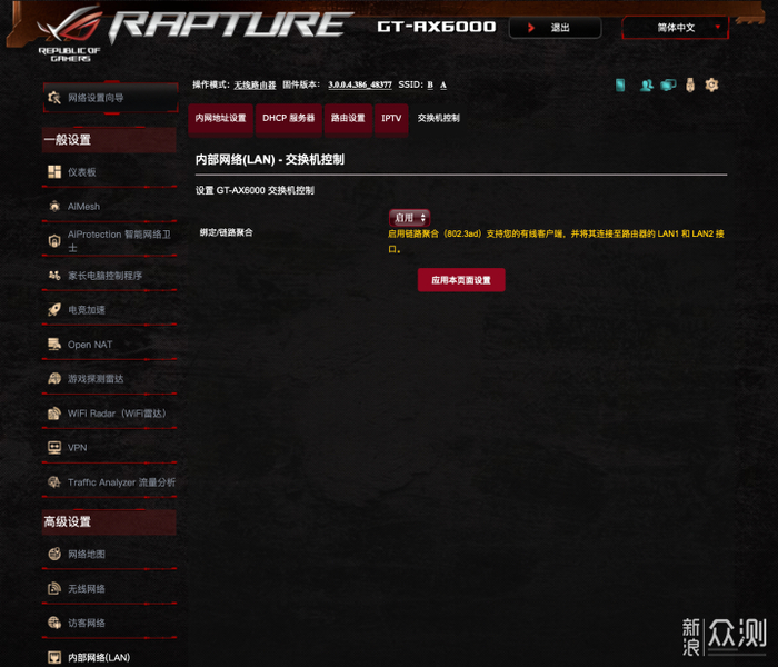 打开路由器内部网络(LAN),在“交换机控制”里启用“绑定/链路聚合”。等待路由重启,再看连接速度,提升到了2Gbps!