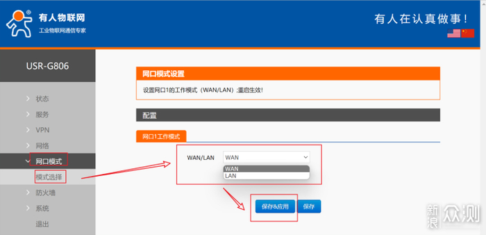 还有我之前说的WAN口可以切换为LAN口,可以去【网口】-【模式选择】里操作。