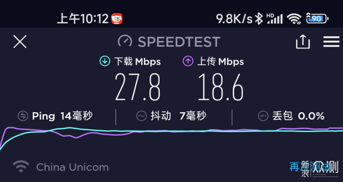 经过测试,下载是27.8Mbps,上传是18.6Mbps