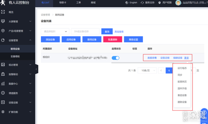 你还可以进行其他操作,像数据查看,固件升级,重启设备都可以在这里统一操作。