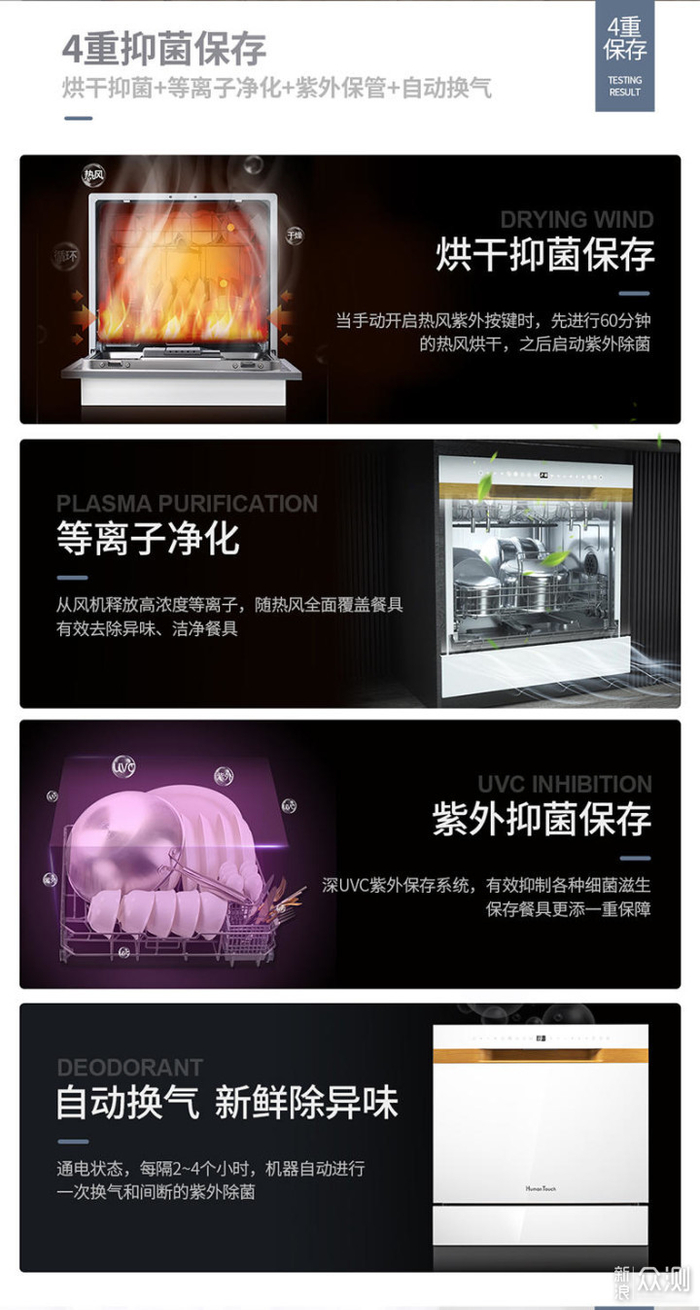 小结:高温消毒是基础,其他几项是辅助加强。有单一使用的,也有联合作用的。正是由于各品牌在杀菌除菌功能方面的发力,让洗碗机有了对标消毒柜的二星、三星、四星消毒效果。
