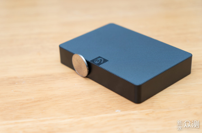 虽然是4TB但是总体厚度控制的还不错,比硬币矮很多。