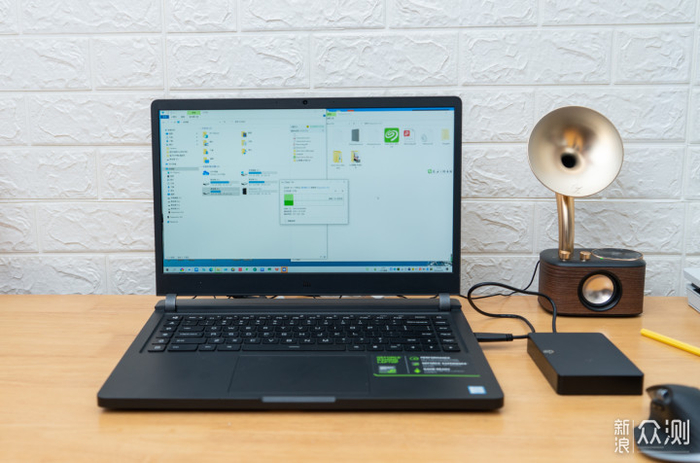 睿翼的外观还是比较硬朗的,表现是经典的倾斜纹理,不沾指纹,商务感比较足。