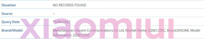 正如我们所说,小米 12S 和小米 12S Pro 在 IMEI 数据库中被发现,其中 2206122SC 是小米 12S Pro 的型号,2206123SC 是小米 12S。