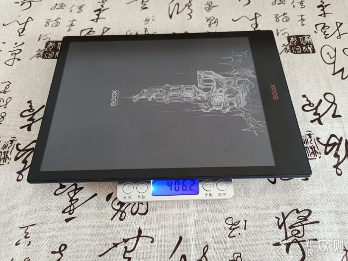 整体重量官方宣传是420g,实测为406.2g,比我平时用的厚重纸质笔记本还要轻,这一点相当满意。